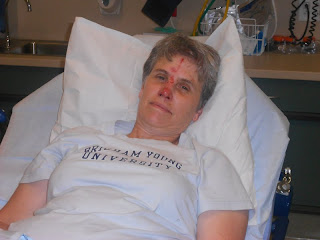 My present appearance garners lots of sympathy, but I must say that I look WAY worse than I feel. (I've posted a photo from the ER, but you'll have to scroll down a ways to see it. Don't look if you don't want to.) They gave me a prescription for pain meds, but I'm doing fine on the regular Ibuprofen dose, and I'm actually only taking that to help with the inflammation and swelling, not because I hurt a lot.